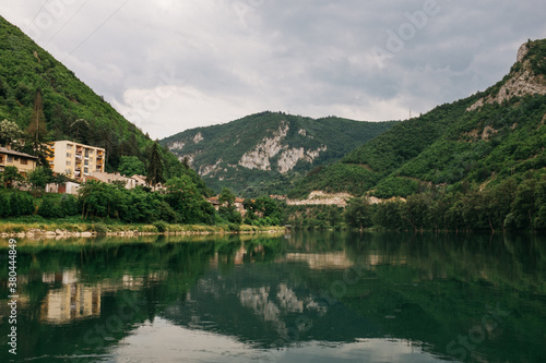 river valley landscape reflects in water