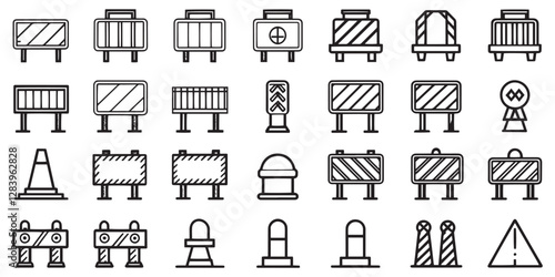Road Block & Pedestrian Barrier Thin Line Icons – Editable Stroke Vector Set