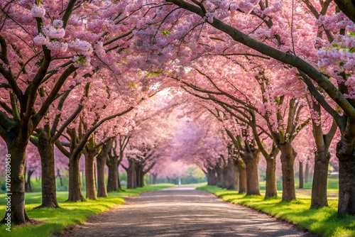 cherry, blossom, tree, road, spring, bloom, pink, nature, avenue, path, landscape, flower, season, sakura, park, alley, scenery, floral, japan, garden, row, beautiful, scene, day, sunlight, grass, trunk, tree branch, blooming