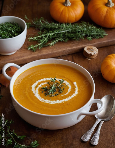 soup, food, bowl, vegetable, pumpkin, meal, dinner, healthy, cream, carrot, orange, lunch, tomatoes, vegetarian, hot, squash, green, dish, cookery, autumn, bread, diet, spoon, epicure