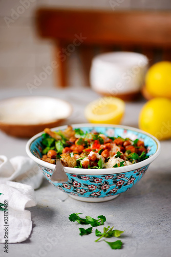 ROASTED CAULIFLOWER SALAD WITH LEMON TAHINI DRESSING..life style .selective focus