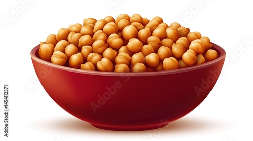 chickpea, roasted, bowl, red, food, healthy, snack, protein, legume, delicious, alimentary, crispy, whole, nut, bean, vegan, vegetarian, organic, tasty, snacking, image, illustration, realistic, isolated, white, background, closeup, dish, gold, brown, diet