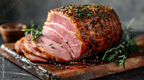 Roasted ham seasoned with authentic spices and fragrant herbs