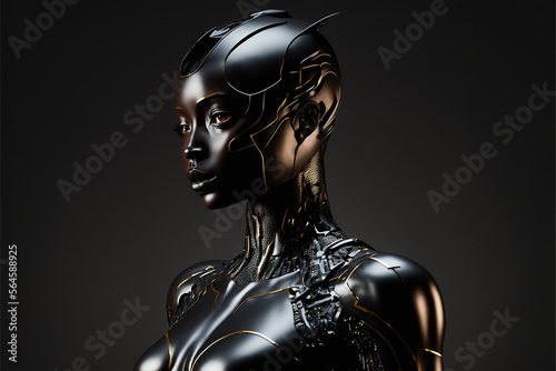 Robot woman on black background. Created with generative Ai technology.