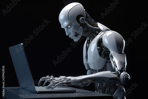 Robotic android working on a computer - generative ai