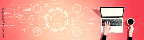 Robotic Process Automation RPA theme with person using a laptop computer