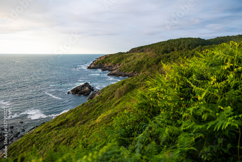 Rocky Coastline Under Cloudy Skies at the Foot of Mount Jaizkibel Around Cape Higuer