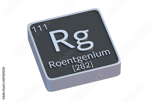 Roentgenium Rg chemical element of periodic table isolated on white background. Metallic symbol of chemistry element. 3d render