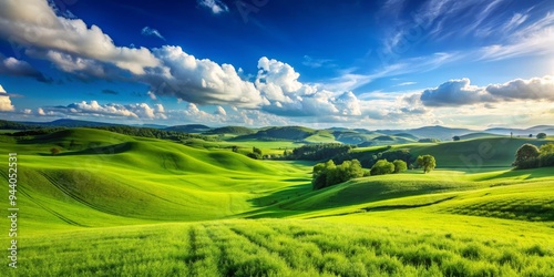 tranquil, green, grass, expansive, photo, nature, beautiful, vibrant, sunlight, rolling, countryside, gentle, farm, daytime, soft, discover, horizon, scenic, peaceful, sunshine, sky, open, travel, foliage, clear, cloud, fluffy, landscape, mountain, hill, vacation, pastoral, blue, calm, field, wildflower, lush, picturesque, summer, picture, serene, farmland, fresh, photo, airy, explore, rural, bright