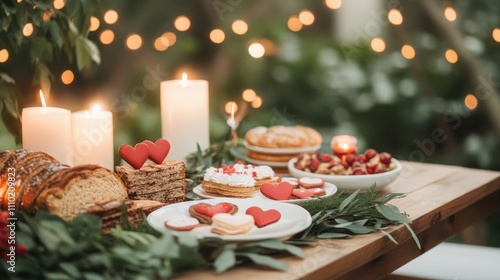 garden, party, table, setting, twinkling, light, dessert, candle, nubes, treat, cookie, greenery, celebration, elegant, ambience, dining, festive, romantic, memory, evening, nature, sweet, food, gathering, decorative, summer, inspiration, event, floral, picnic, joy, delightful, harmony