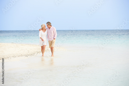Romantic Senior Couple Walking On Beautiful Tropical Beach