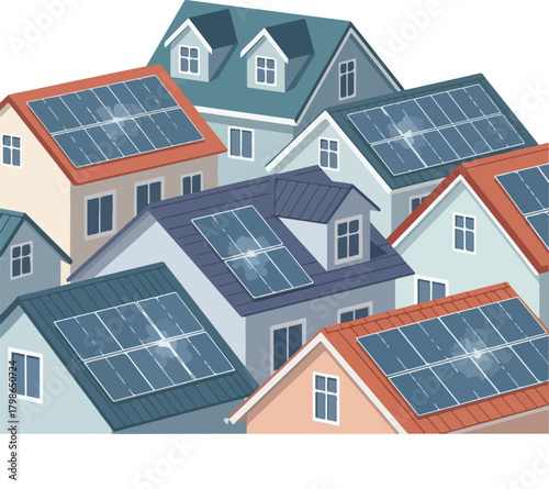 Rooftop Solar Panels on Residential Homes in a Community for Renewable Energy Concept
