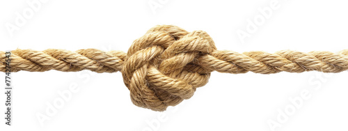 Rope knot isolated on transparent background as a strong nautical marine line tied together as a symbol for trust and faith and a metaphor for strength or stress.