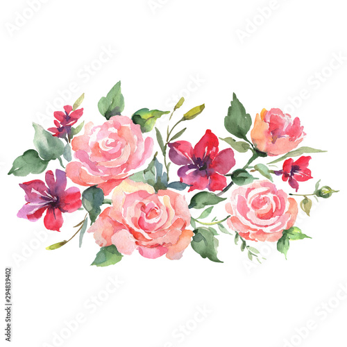 Rose bouquet floral botanical flowers. Watercolor background set. Isolated bouquets illustration element.