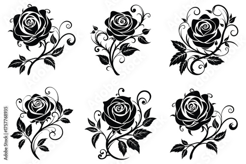 Rose Flower Vector Set Elegant Floral Silhouette Design for Vintage Decorative Art