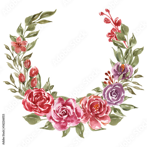 rose flower watercolor wreath arrangement