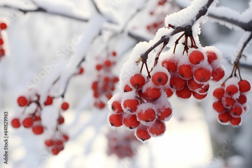winter, snow, berry, red, tree, nature, twig, cold, frost, glacé, rowan, plant, ice, fruit, viburnum, season, autumn, garden, christmas, white, bush, rose, bunch