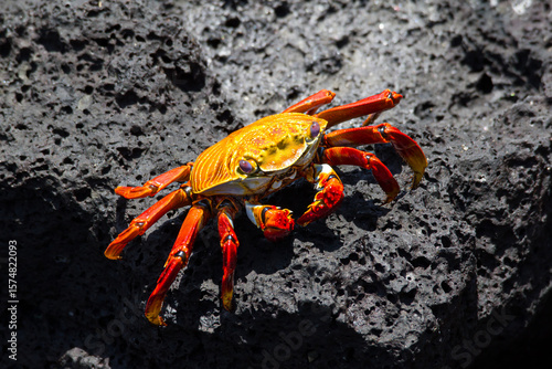 Rote Klippenkrabbe auf dunklem Vulkangestein auf Galapagos