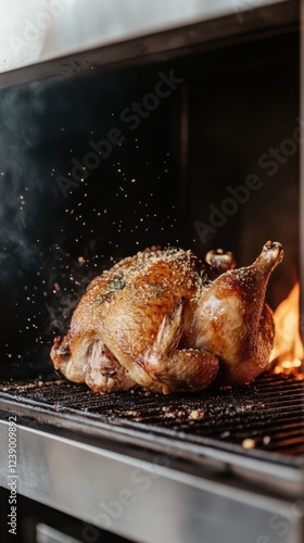 rotisserie, chicken, grilling, open, flames, cooking, crispy, texture, smoke, rustic, setting, bar-b-q, food, preparation, meat, savoury, technique, heat, culinary, delicious, flavorful, kitchen, charcoal, fire, appetising, gastronomy, summer, festive, dining, art, roasting, deliciously, mouth-watering, fresh, herb, spice, scorching, favor, traditional, feast, backyard, meal, meal, life events, grilled