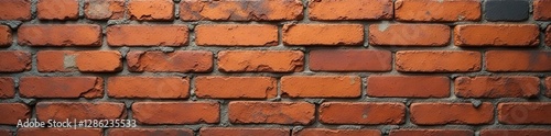 Rough, aged brick wall; uneven mortar, chipped bricks, brick pattern, aged, weathered