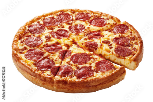 Round pizza with pepperoni slices and cheese