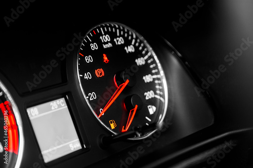 round speedometer, odometer with a range, tachometer. sign and symbol on car dashboard.