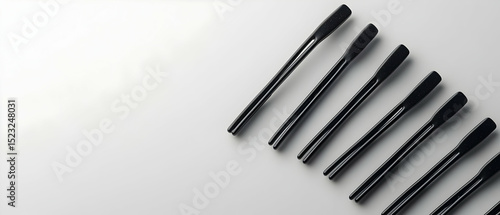 black, hair, clip, accessory, styling, beauty, fashion, tool, professional, equipment, metal, plastic, row, parallel, aligned, arrangement, minimalist, simple, clean, white, background, make-up, hair care, salon, modern, contemporary, design, geometric, shape, line, pattern, industrial, manufacturing, detail, closeup