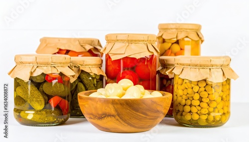 Row of Jars Filled with Pickled Vegetables