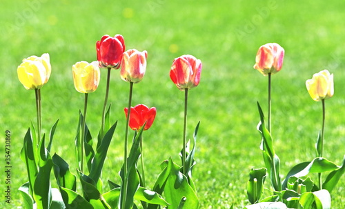 tulip, flower, spring, red, nature, tulip, garden, green, flower, pink, blossom, beauty, bloom, floral, plant, colourful, yellow, colours, flora, grass, stem, leaf, row, white, springtime, outdoors, day