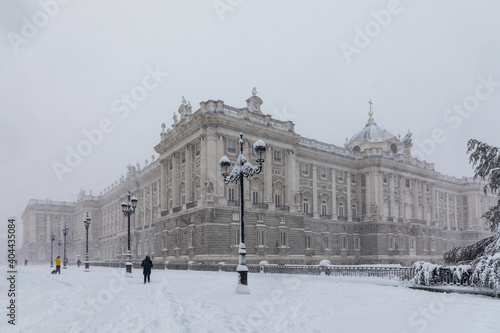 Royal Palace in madrid theater covered by snow from the storm philomena