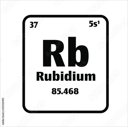 Rubidium (Rb) button on black and white background on the periodic table of elements with atomic number or a chemistry science concept or experiment.