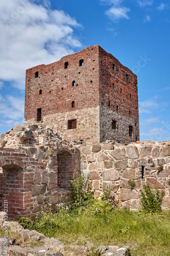 Ruins of Mantel tower in Hammershus castle - Scandinavia's largest medieval fortification.