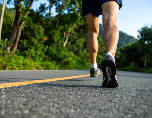 runner, asphalt, path, leg, shoe, running, exercise, healthy, outdoors, trail, road, sharpened, movement, fitness, active, sport, nature, green, sunlight, warm, man, muscle