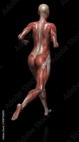 Running woman with visible muscles on black