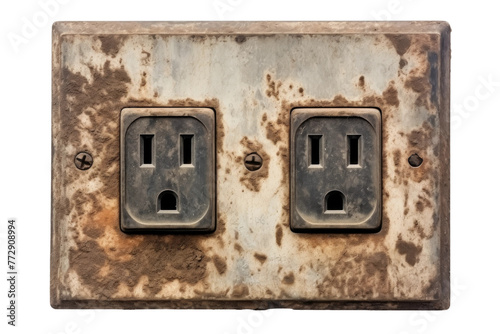 Rusted Metal Switch Plate With Two Outlets. On a White or Clear Surface PNG Transparent Background..