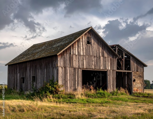 Rustic Barn in a Countryside Landscape Under Dramatic Cloudy Sky