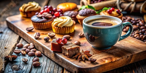 Rustic Coffee & Sweets Still Life: Wooden Board Photography