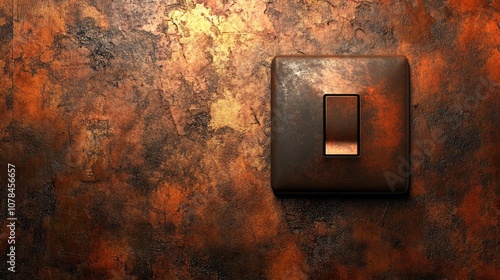 Rustic Copper Light Switch on Textured Orange Rust Wall Enhancing an Industrial Aesthetic with a Touch of Retro Charm in Interior Design
