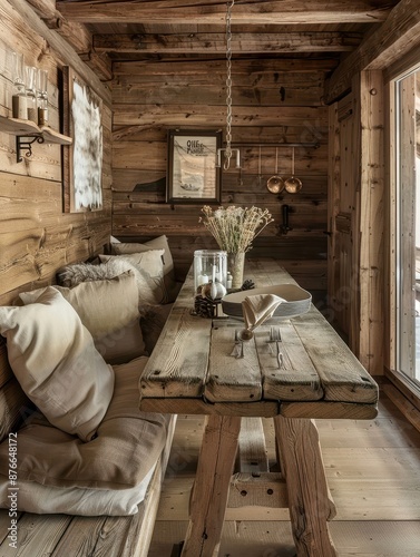 Rustic Country Dining Table on a Wooden Background for Cozy Home Decor