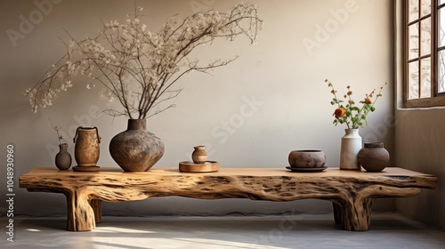 rustic, coffee table, wood, log, bench, stucco, wall, farmhouse, japanese, interior, living room, decor, natural, cosy, modern, design, simplicity, texture, warm, minimalist, earthy, charme, flower, flower, vase, table, room, pot, home, chair, plant, decoration, still life, furniture, tea, spring, bouquet, garden, house, nature, cup, window