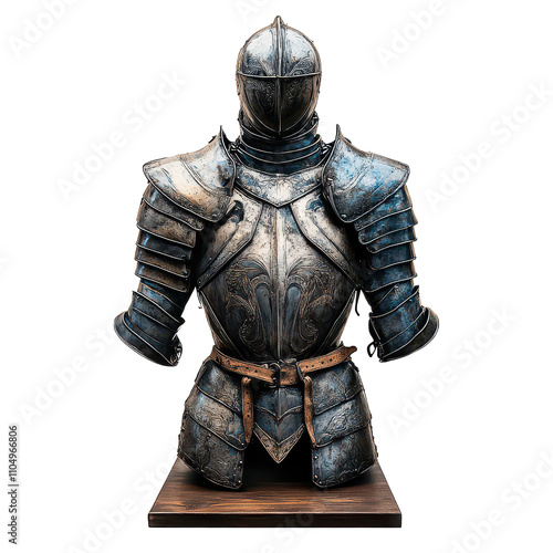 Rustic display of ancient warrior armor highlighting intricate designs and historical craftsmanship, Ancient Warrior Armor Display A Rustic Showcase Medieval Battle Gear, transparent background.