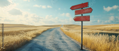 hay, opportunity, destination, nature, guidance, grain, vintage, horizon, path, signpost, wheat, meadow, weathered, landscape, red, decision, aged, future, country, travel, direction, grass, sky, old, field, rustic, agriculture, adventure, summer, rural, road, signs, empty, countryside, fork, gold, journey, cloud, farm, blank, wooden, retro, choice, harvest, way, arrow