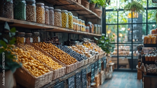 store, rustic, dried, fruit, nut, jar, organic, good, cosy, wooden, shelf, inviting, natural, vibrant, bright, healthy, decor, aesthetic, warm, elegant