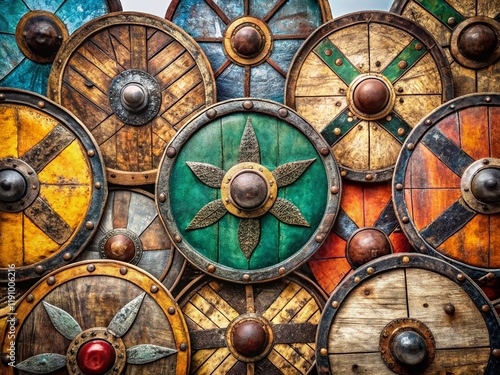 Rustic Viking Shields: Wooden & Metal Collection - Isolated PNG Images