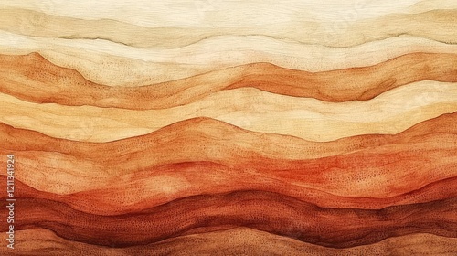 Rustic watercolor concept. Abstract watercolor landscape with gentle waves in warm earth tones and soft textures.
