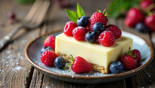 Rustic white chocolate branch dessert, adorned with berries , dessert, sweet, food