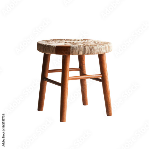 Rustic Wooden Stool with Woven Seat - Farmhouse Style Home Decor
