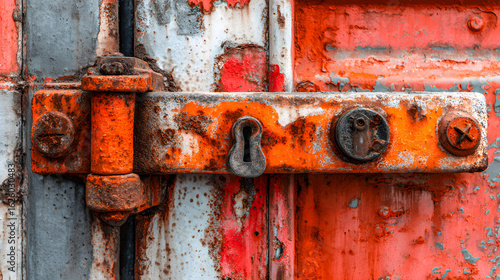 rust, lock, door, container, metal, corrosion, weathered, iron, paint, security, mechanism, key, surface, orange, steel, gate, old, relic, craftsmanship, worn, pattern, oxidized, grunge, industrial, hardware, tool, rusted, box, worn-out, barrier, retro, decay, handle, aged, texture, object, rugged, alloy, material, vintage, component, fastener, tarnished, machinery, latch