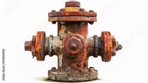 rusty old fire hydrant on isolated white background, Material work concept for designer