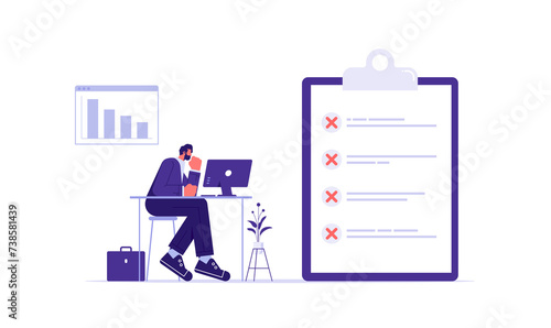 sad, businessman, concept, clipboard, paper, business, cartoon, bankruptcy, mark, design, people, isolated, man, illustration, white, datum, work, success, character, signs, flat, person, comic, funny, check, young, man, job, board, manager, occupation, pad, expression, evaluate, option, professional, no, note, document, write, checklist, list, page, male, computer